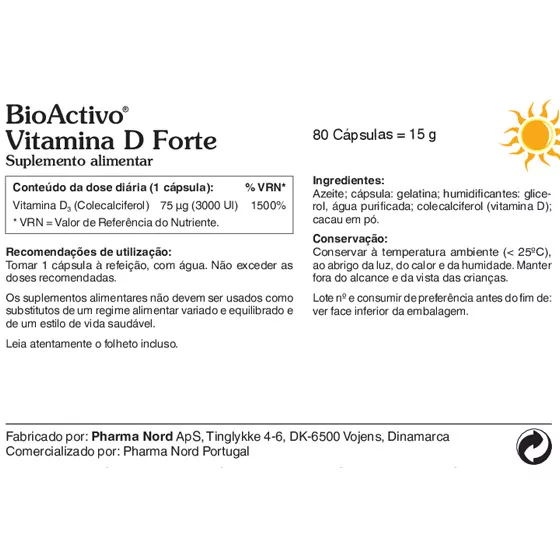Bioactivo Vitamina D Forte 75µg 80 Cápsulas