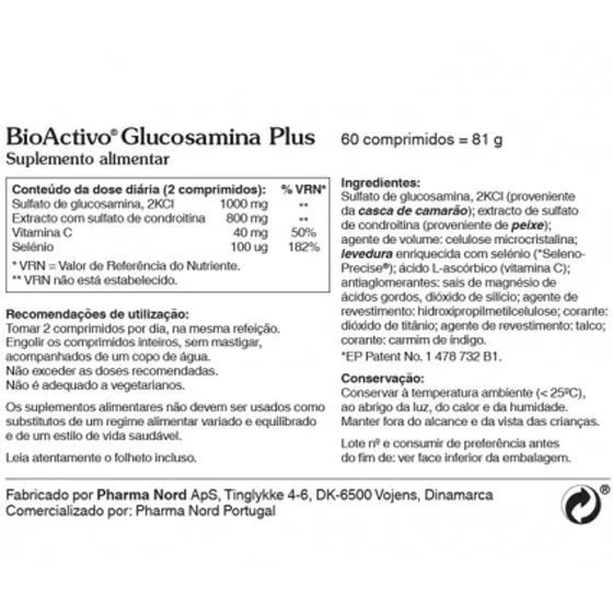 BioActivo® Glucosamina Plus contém glucosamina e condroitina com vitamina C que contribui para a formação normal de colagénio para o funcionamento normal da cartilagem e ossos. Com selénio que contribui para a proteção das células contra as oxidações indesejáveis.