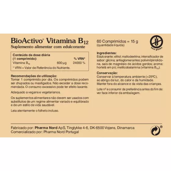 O BioActivo Vitamina B12 contém comprimidos de cor rosa claro, com um agradável sabor a hortelã. 600 microgramas de metilcobalaminaCada comprimido contém 600 microgramas de metilcobalamina, que é a forma activa de vitamina B12.