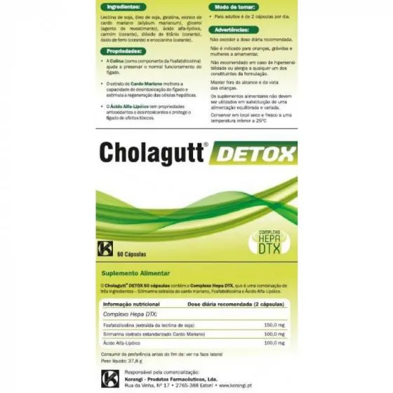 Cholagutt® DETOX é recomendado a adultos com frequentes sintomas de cansaço ou de desconforto digestivo assim como pessoas com um estilo de vida agitado com excessos alimentares. Também é adequado no(s) cuidado(s) de pessoas que tomam regularmente medicamentos, que consomem álcool, tabaco e gorduras com frequência ou que vivem num ambiente poluído.
