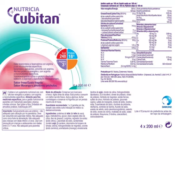 Suplemento nutricional oral hiperproteico, enriquecido em arginina e micronutrientes (Zinco, Vit. A, Vit. C, Vit. E).
