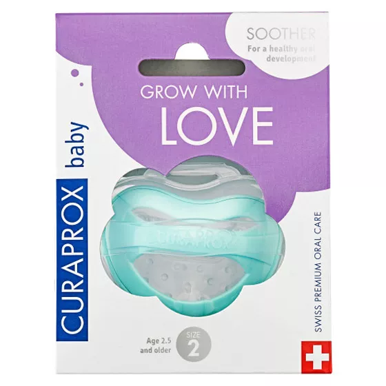 Boas notícias: depois dos 12 meses de idade, estas alterações negativas podem ser ativamente combatidas com a chucha da Curaprox nos tamanhos 1 e 2.