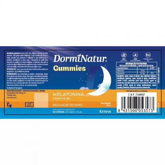 DormiNatur Gummies são uma forma nova, deliciosa e divertida de tomar nutrientes. Estas gomas contém Melatonina, a qual contribui para reduzir o tempo necessário para adormecer.