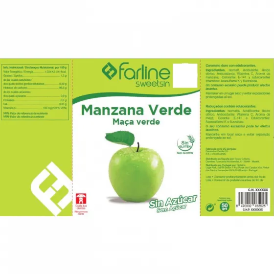 Farline Sweetsin Rebuçado Maçã Verde Sem Açucar 50g