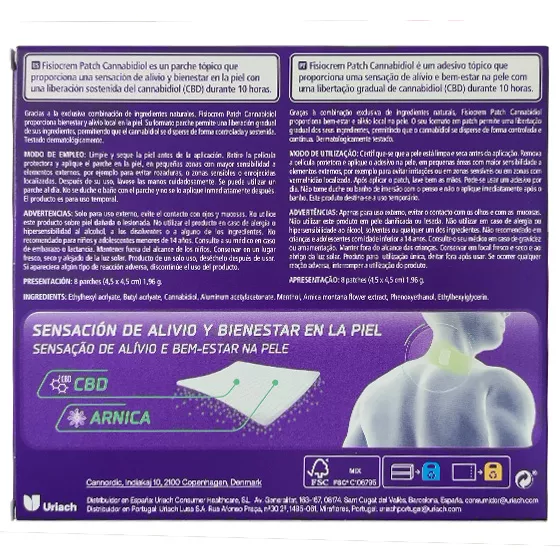 Graças à combinação exclusiva de ingredientes naturais, Fisiocrem Patch Cannabidiol proporciona bem-estar e alívio local na pele.