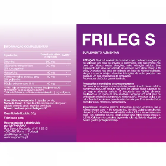 Frileg S 60 Cápsulas a insuficiência venosa crónica revela-se principalmente pela sensação de pernas cansadas e pesadas, dor, edema (inchaço), formigueiros, cãibras e dormência nos membros inferiores.