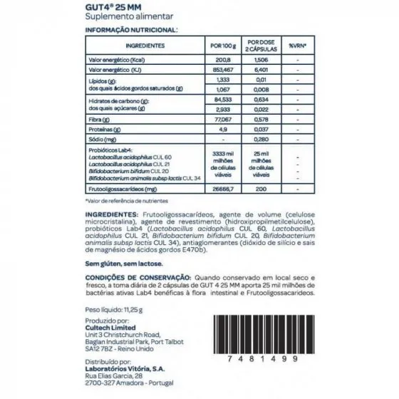 Este suplemento contem uma associação de quatro espécies de bactérias benéficas à flora intestinal que foram expressamente selecionadas, cuidadosamente cultivadas em substratos específicos e misturadas na proporção necessária para optimizar o seu bom funcionamento.