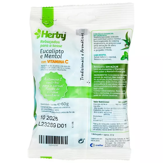 Herby Rebuçados para a Tosse Eucalipto e Mentol com Vitamina C S/Açúcar 60g