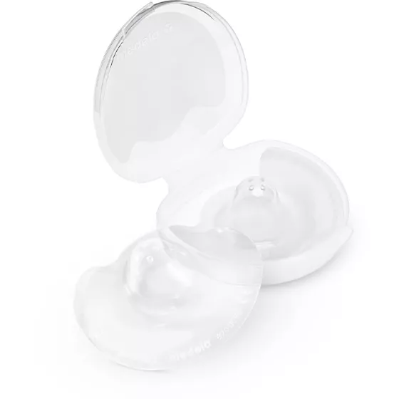 Um mamilo de silicone é um pedaço de silicone fino e flexível que coloca sobre o seu mamilo para o proteger antes de amamentar. Tem orifícios na ponta, para o seu leite poder passar através deles para o seu bebé. Algumas mães preocupam-se com o facto de uma barreira entre elas e os seus bebés poder interferir com a intimidade da amamentação e é essa a razão por que os mamilos de silicone Contact™ da Medela têm uma secção aberta, para garantir que ainda desfruta muito desse contacto de pele especial.
