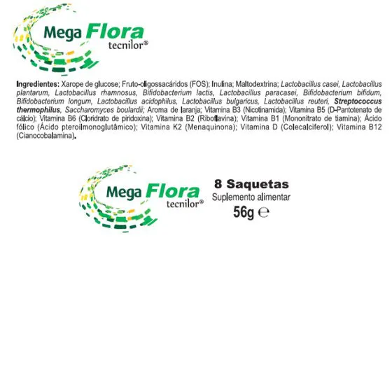 O MegaFlora tecnilor é um simbiótico, isto é, um produto no qual se combinam prebióticos e probióticos.