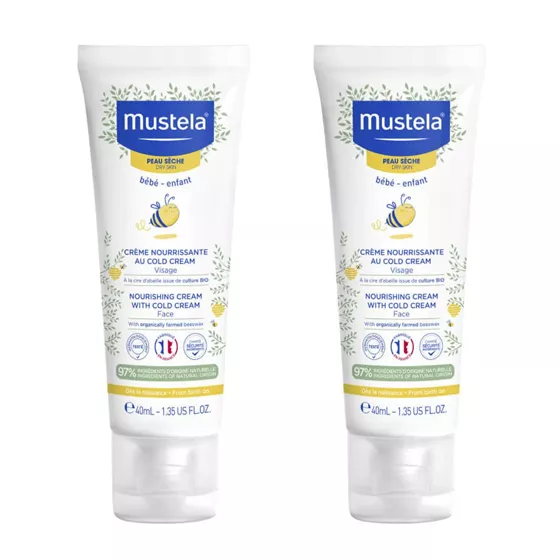 Aplicar o creme nutritivo da Mustela de manhã e à noite no rosto do bebé ou da criança.