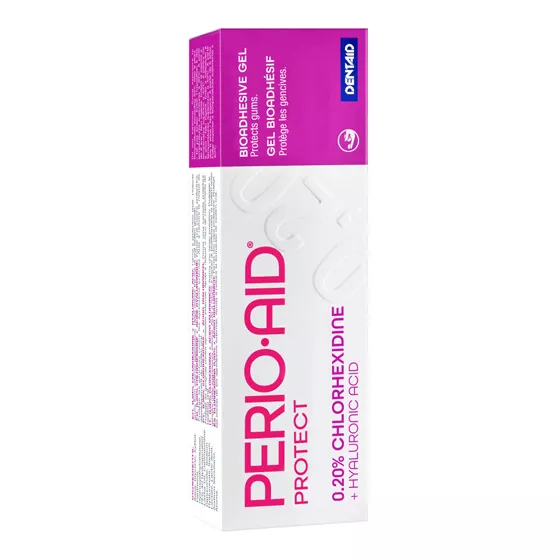 PERIO·AID Protect gel com clorohexidina 0,20%, ácido hialurónico 0,20% e pantenol 5%, é um gel oral com propriedades reparadoras e regeneradoras dos tecidos orais, indicado após tratamentos gengivais, cirúrgicos ou outros, favorecendo a regeneração da mucosa oral danificada. Graças à sua bioadesividade, permanece no tecido até 3,5 horas*.