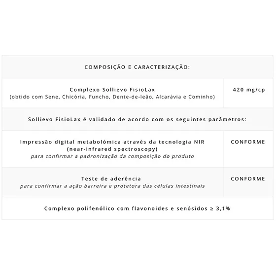 Sollievo FisioLax é obtido através de processos de produção, que não utilizam solventes ou outras substâncias de síntese química.