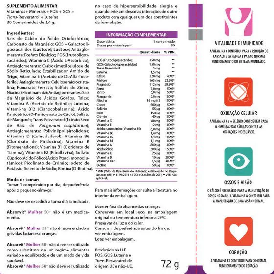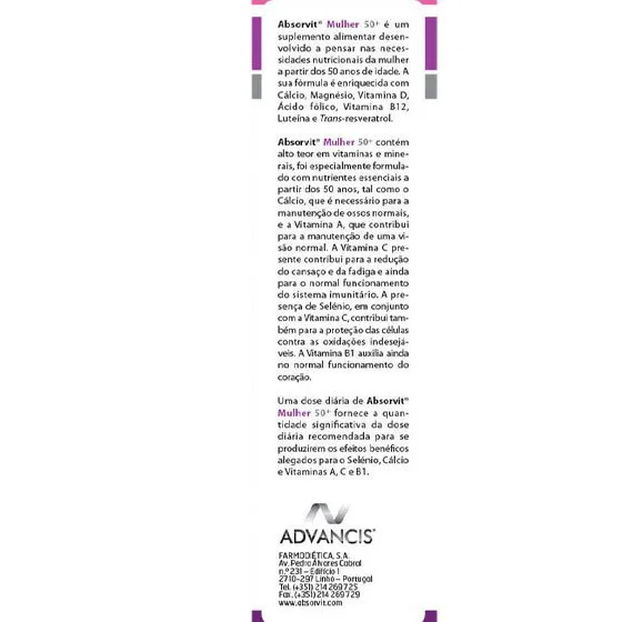 Absorvit Mulher 50+ é um suplemento alimentar desenvolvido a pensar nas necessidades nutricionais da mulher a partir dos 50 anos de idade.