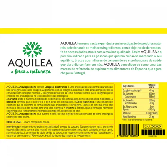 Aquilea Articulações Fortes 30 Comprimidos suplemento alimentar com ativos vegetais que contribuem para o conforto das articulações.