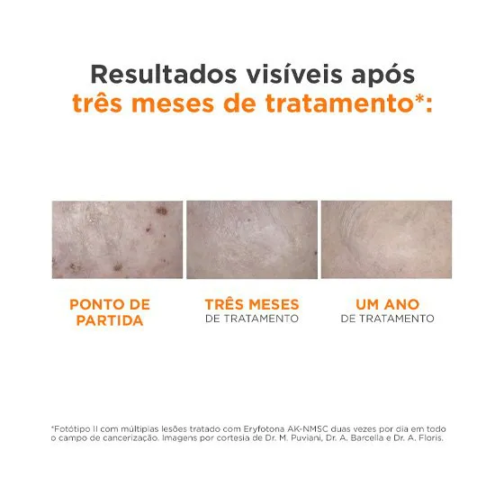 Aplicar generosamente sobre toda a zona afetada e outras zonas de risco devido a exposição solar crónica (rosto, testa, orelhas, decote, couro cabeludo e dorso das mãos) duas vezes por dia, de manhã e ao meio-dia.