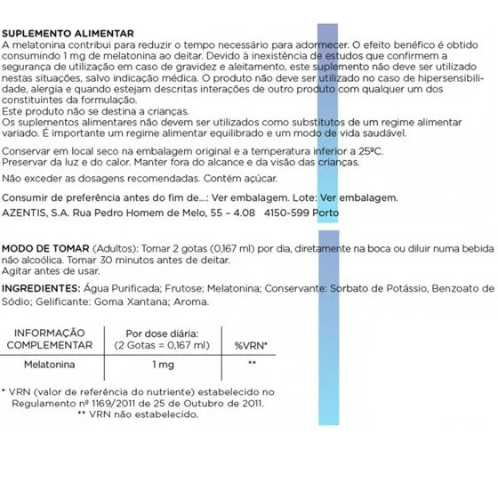 Valmel Gotas contém melatonina que contribui para reduzir o tempo necessário para adormecer.